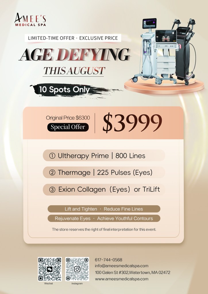 Look Younger This August – Ultherapy, Thermage & Skin Boosters Now on Sale Ready for Summer Skin?Smooth, Cleanse & Hydrate with our Signature Hydrafacial + Dermaplaning235 | Bring a friend and get the second at 50% OFF Aesthetic Package – Pick Any 3Includes choices like TriLift, Exion Eye Collagen, ZO Peel, Xeomin & more999 | August Limited Offer ⏳ Age-Defying Ultimate DealUltherapy, Thermage + Exion or TriLift combo💲3999 (Original: $6300) | Lift & Tighten, Reduce Fine Lines Share this: Share on X (Opens in new window) X Share on Facebook (Opens in new window) Facebook Like this:Like Loading... Related