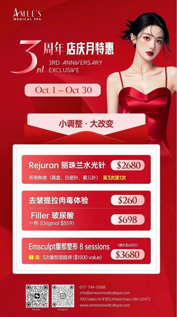From October 1 – October 30, Amee’s Medical Spa celebrates its 3rd anniversary with exclusive beauty promotions on skin rejuvenation, injectables, body contouring, facials, and more.